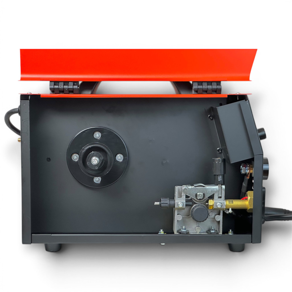 A gépet úgy terveztük, hogy bizonyos szempontból túlméreteztük: a nagyobb gépház, a tágabb huzalbefogadás és a nagyobb dinze csatlakozás mind azt szolgálják, hogy a készülék hosszú távon, folyamatosan képes dolgozni, anélkül, hogy túlmelegedne. Ez a túlméretezés különösen fontos, hiszen a barkács kategórián belül a MIG-200E Syn számít a legnagyobb teljesítményű és legrobosztusabb gépnek, így egész napos munkára, hosszú hegesztési ciklusokra is nyugodtan használható.